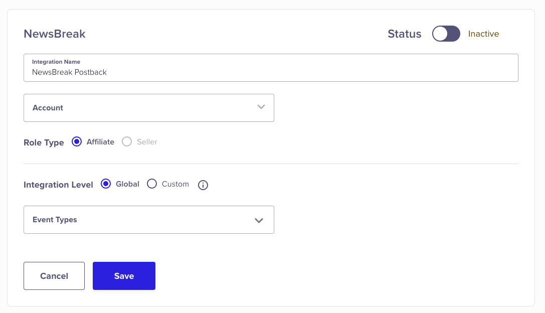 - Global: Sends all events of the selected event types to NewsBreak.