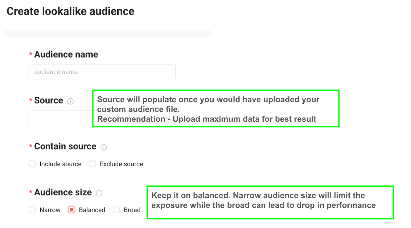 - Use a source audience with enough size and high-quality data.