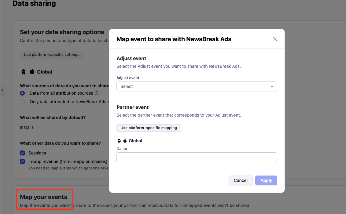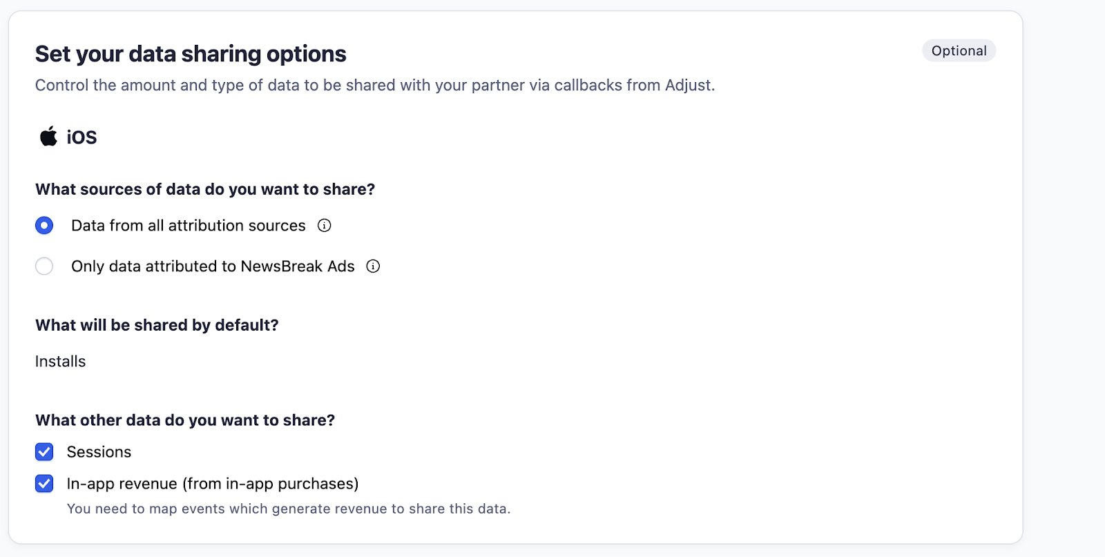 ⚠️ Note: To share Ad Revenue data with NewsBreak, you’ll need to ensure your Adjust account includes the relevant Ad Revenue Package.