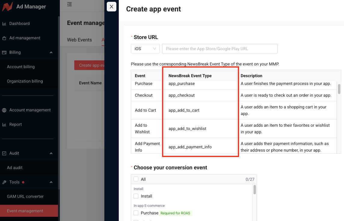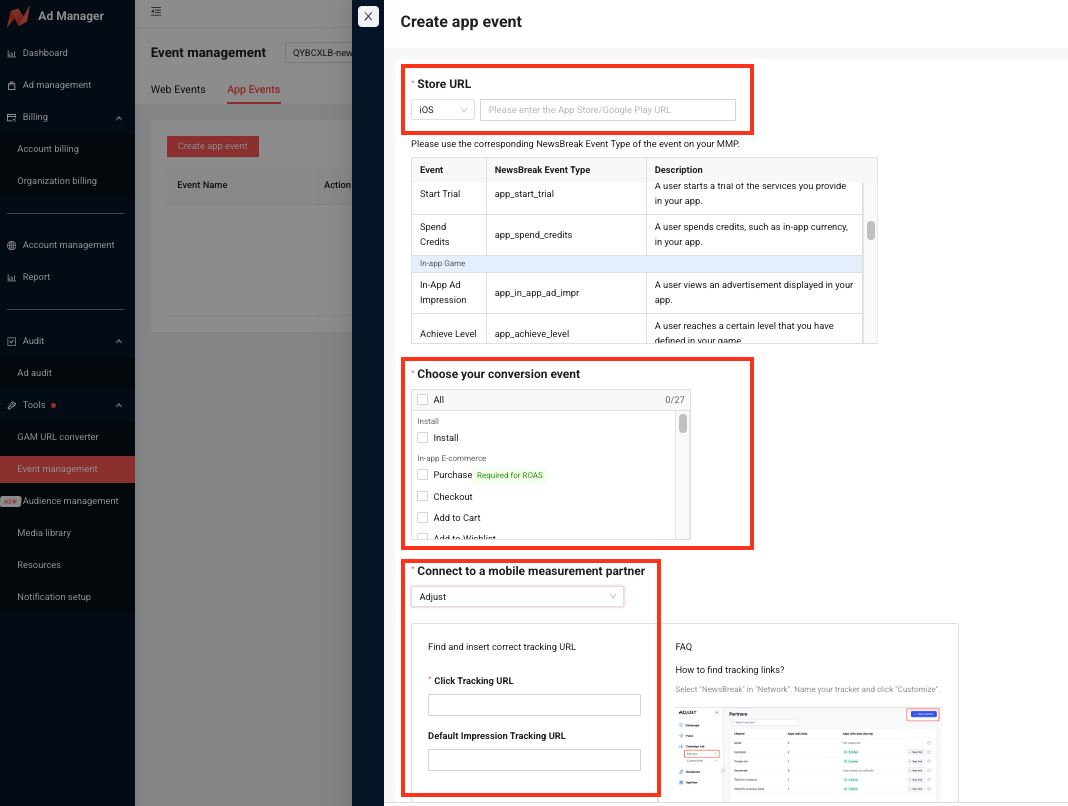 6. Head to Newsbreak Ad Manager, go to Event Management > App Events to complete your event setup