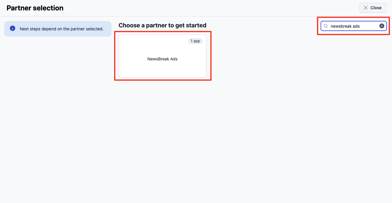 1. Head to Adjust, add “Newsbreak Ads” as a partner