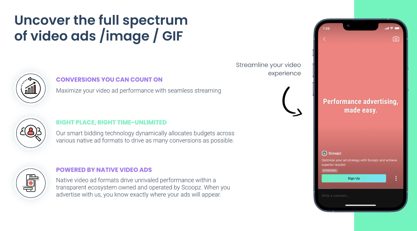 High Engagement: Scoopz mirrors the modern short-form swipe experience, giving brands visibility in a format that naturally drives high attention.