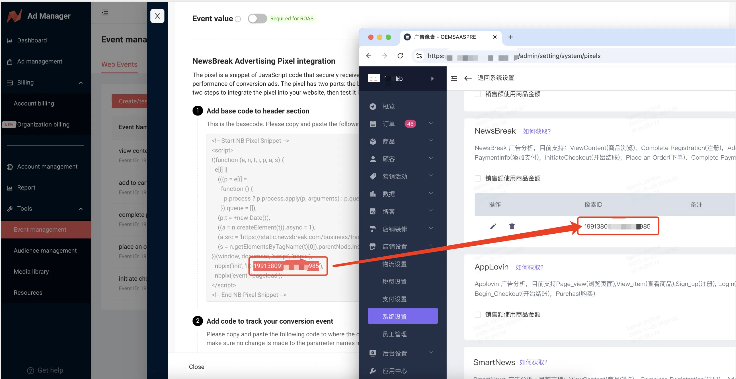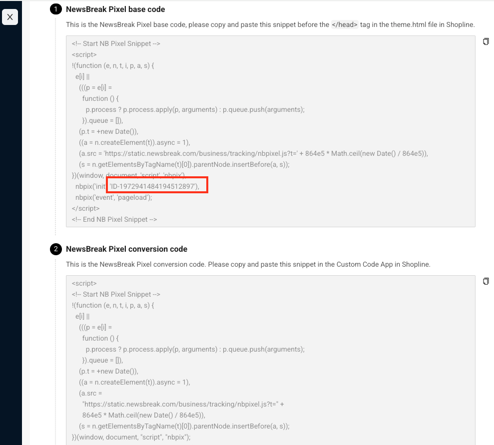 Step 2: Find and copy the NewsBreak Pixel ID in the events created